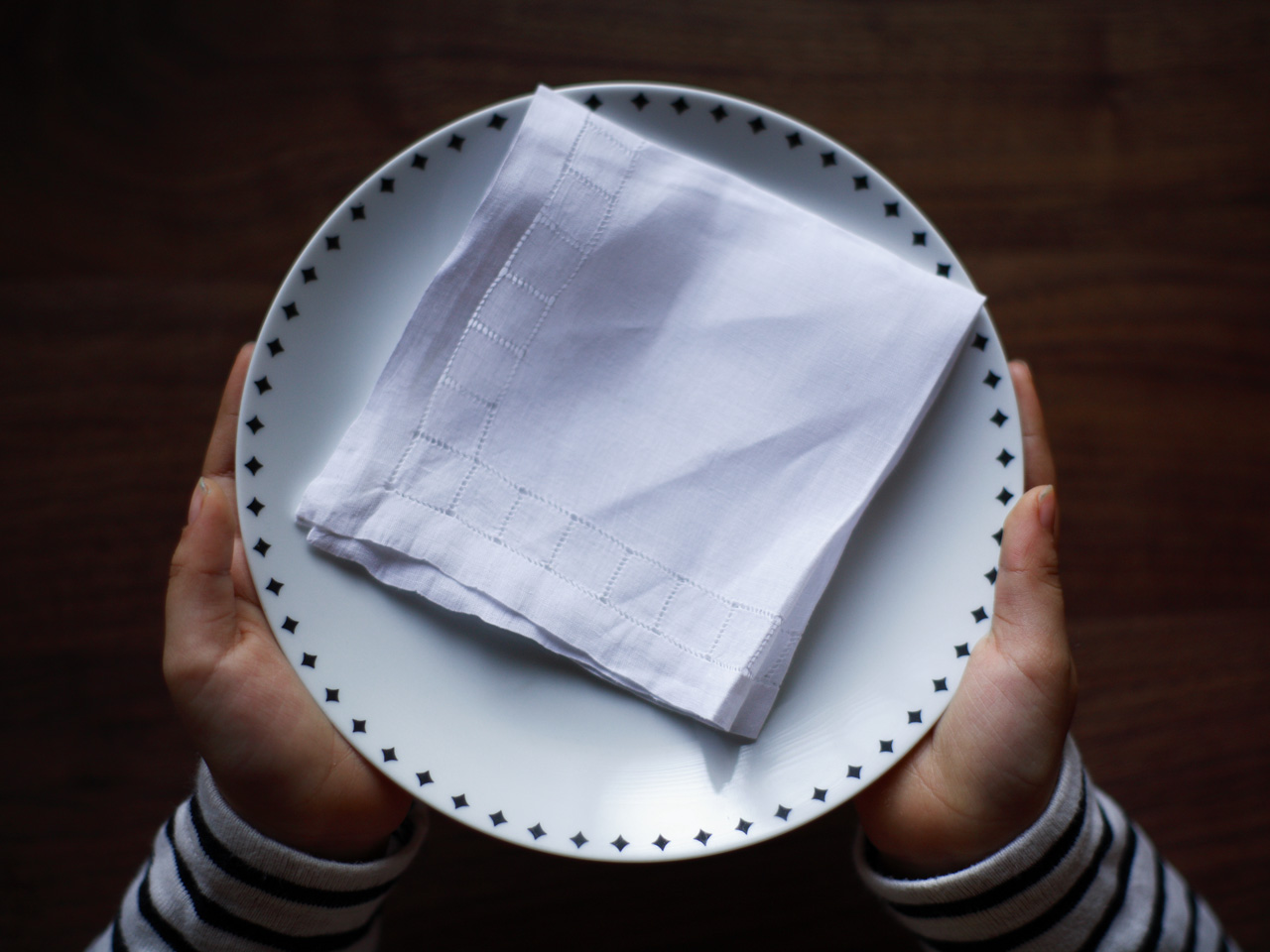 で買ったドイツのお皿とアンティークリネンのハンカチ。がばかわいかー。