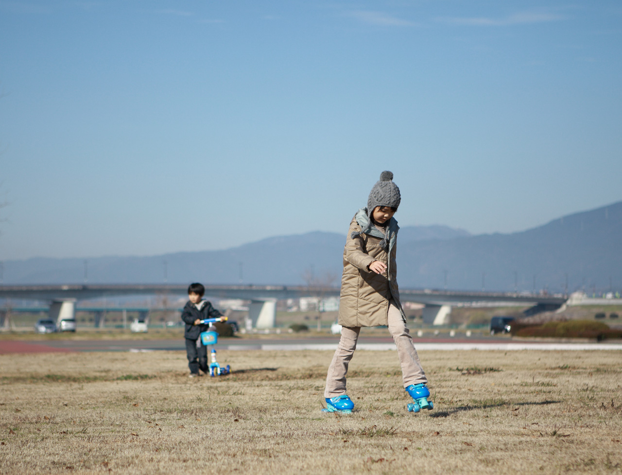 初ローラースケート。いきなり転んで挫折し芝生を歩きだした海。