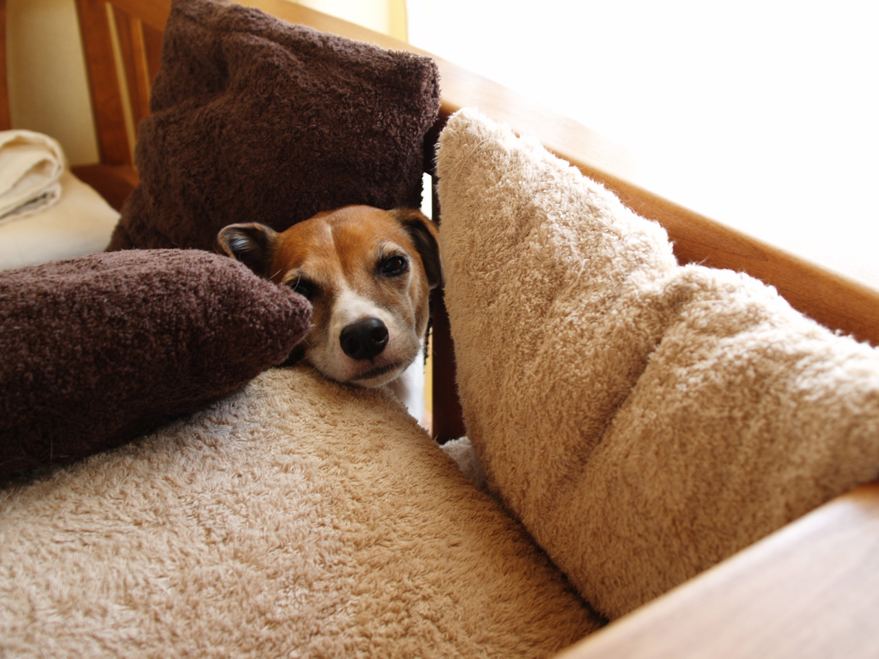 寝ている間にヨメにクッション埋めの刑にされたのに、あきらかに俺を疑っているワクチン。
