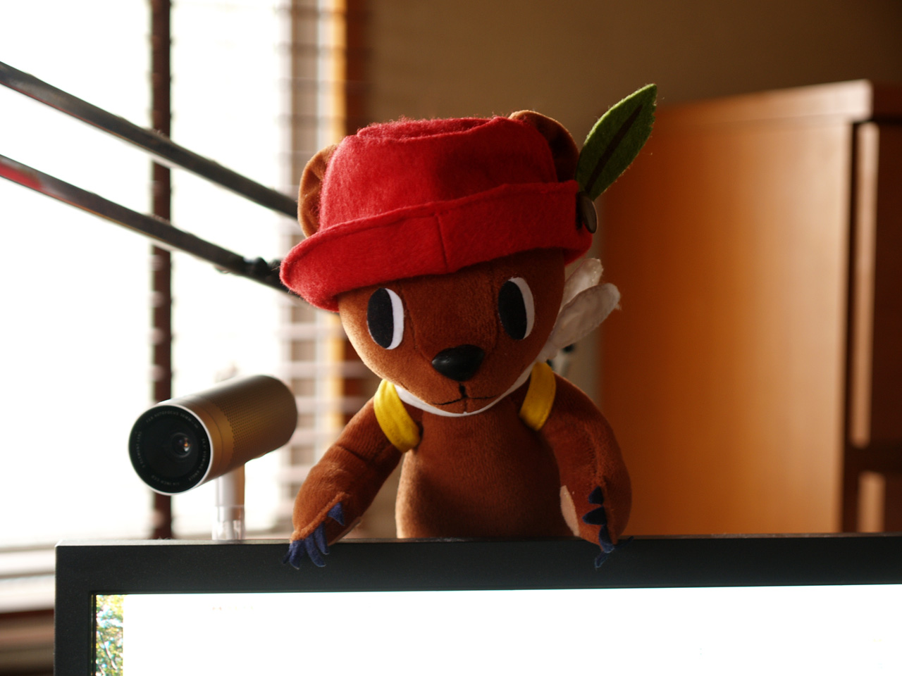 バレンタインデーに従姉妹からもらった熊が見つめるので仕事がはかどる。ありがとう。