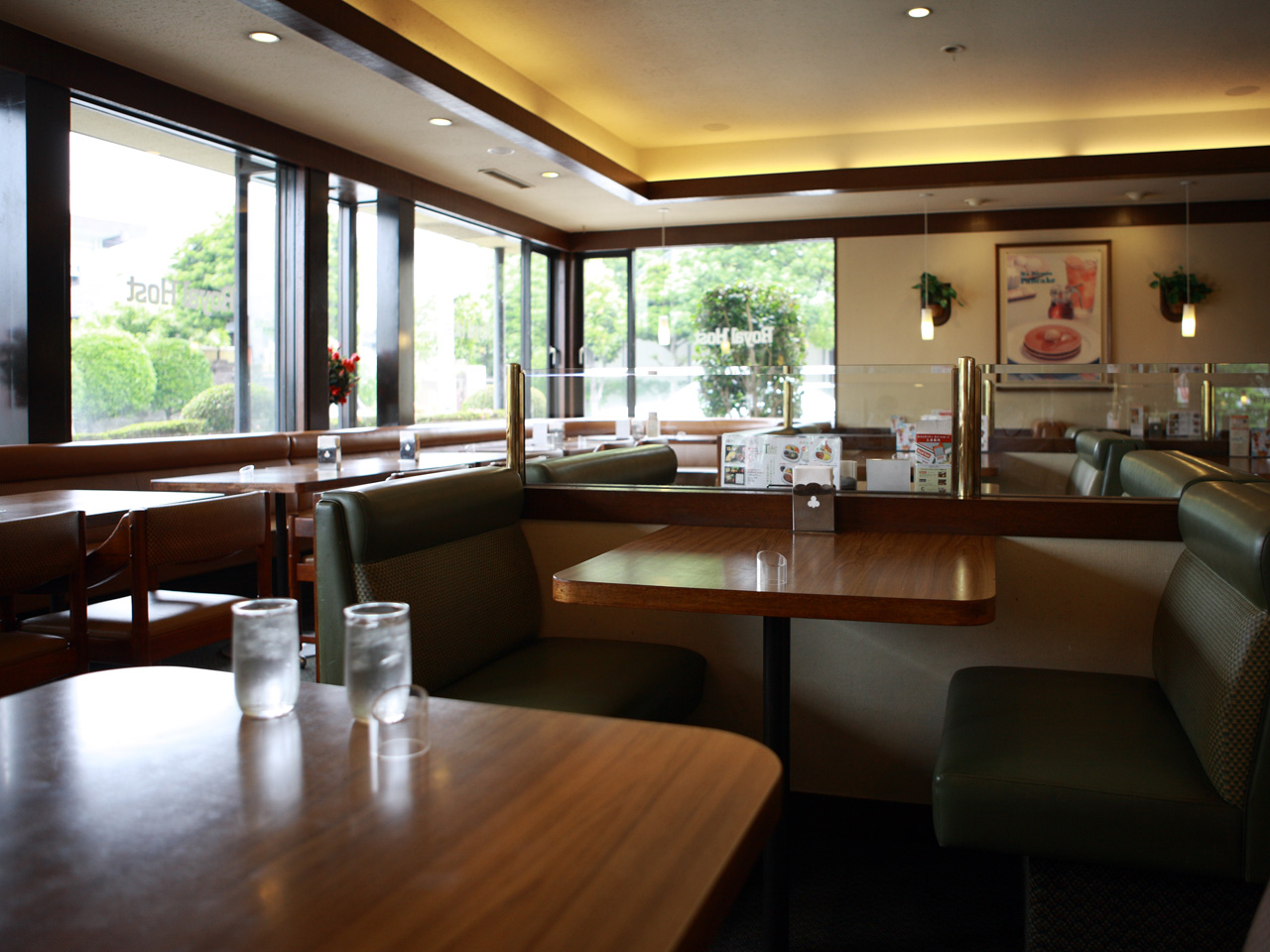 朝ごはんを食べにロイホへ。貸し切り状態に浮かれて撮影。